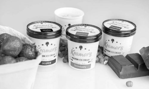 Historien om Kramer's Is har sin begyndelse i 2016 i Aarhus, hvor tre venner havde en drøm og et ønske om at skabe fremtidens is uden at gå på kompromis med smag, råvarer eller kvalitet. Med denne klare vision gik de tre stiftere til den lokale isbar, Okkels Is i Risskov, hvor de fik lov at låne ismaskinen efter lukketid. Mange millioner is senere blev Kramer's nu klar til at lancere fremtidens fødevarer inden for protein og sportsernæring.